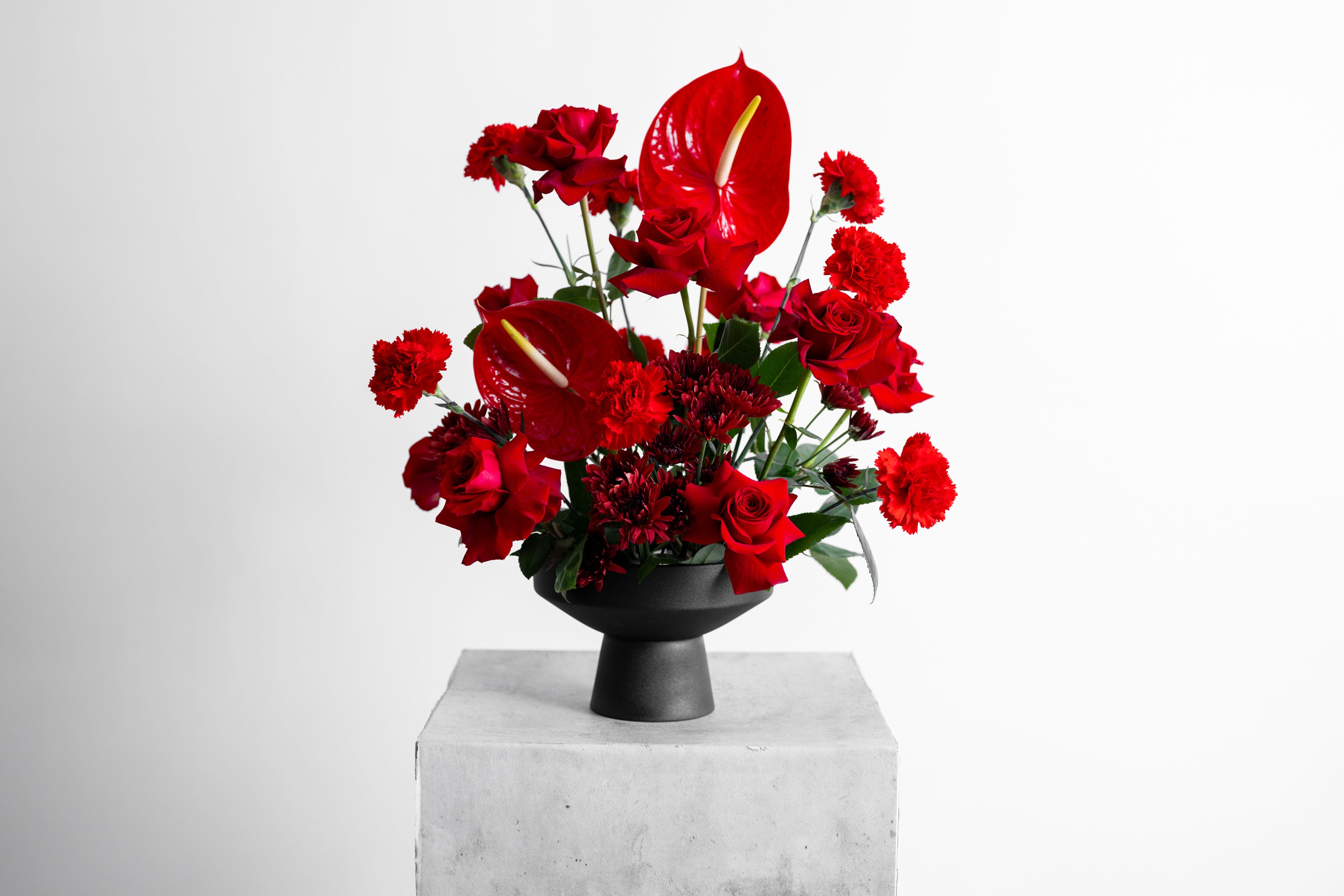 Red Valentine is part of our Valentine’s Collection, created to feel bold, modern, and unforgettable. Premium red roses and rich seasonal blooms are styled in a sculptural arrangement that elevates any space, perfect for romantic moments, celebrations, and intentional gifting.