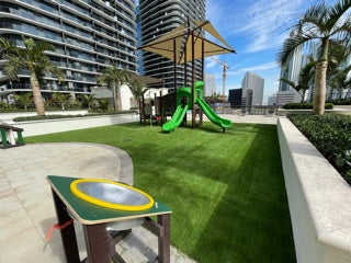 2,000 SQFT grass turf installation. Special underlay padding for fall hieght protection.
